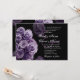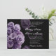 Este design roxo e preto dos rosas faz um convite distintiva diferente do casamento, e é caracterizado atualmente em um papel metálico hued do gelo que dê a seu convite um shimmer e um brilho especiais. Você pode experimentar com os tipos de papel diferentes para obter apenas o olhar que você quer. Se você quer um revestimento lustroso (que está aplicado somente à parte anterior de seu convite) escolha os papéis de linho, básicos ou metálicos. Se você quer um revestimento matte, escolha specked, sentido, ou reciclado. Este convite vem com um envelope feito sob medida A7.