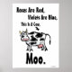 Rosas São Vermelhas, Violetas São Azuis, Isto É Uma Vaca, Moo. Esta poster engraçada é a decoração perfeita... Ele inclui o poema acima e um desenho animado divertido de uma vaca negra e branca. Divertido, estranho, e só a coisa para aqueles com um estranho senso de humor e um amor por poesia ruim. Personalize-o! Você pode alterar o texto ou a cor de fundo. Faça o que quiser e faça o seu!