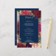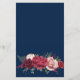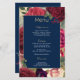 Um design elegante, com rosas vermelhos, burgundy e embaçados com uma camada azul marinho. Este cardápio de casamento é uma excelente escolha para um casamento de verão com flores de cheio ricas. Os tons profundos também o tornam adequado para cerimônias de outono e outono. Este menu tem amplo espaço para três cursos. Adicione os subtítulos preferidos e, em seguida, as opções do menu.
