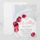Convite de casamento desenhado com belas pétalas rosas vermelhas e satin para simbolizar o amor romântico. A personalização fácil pode ser feita usando o modelo do Zazzle para que você possa alterar o texto de exemplo para si mesmo. Para mais convites para casamento e outros presentes e produtos, compre www.zazzle.com/curio.bloom/collections. Para obter mais criações curiosas, visite instagram.com/curio.bloom