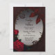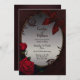 O convite de casamento de temas góticos feito em gráficos de uma área de texto oval, contra um fundo de burgundy escuro angustiado. A trabalho de arte gráfica de um arco de estanho, rosas vermelhas e burgundy floresce em torno da área de texto. Personalize todos os campos de texto para seu dia especial. Os produtos de casamento correspondentes estão disponíveis.