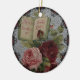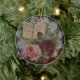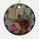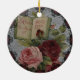 Lindo enfeite de Natal de rosas vitorianas e um livro que diz "Rosas Emblema do Amor."