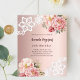 Um elegante convite de 50 anos para mulheres. Um fundo de gradiente de ouro rosa decorado com flores, rosas e rendas de ouro rosa e rosa. Personalize e adicione um nome e detalhes da parte. 1 folha = 1 convite impresso de borda a borda.