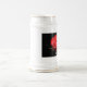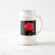 Caneca de cerveja com design rosa vermelha e verso inspirador.