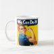 Faltando a motivação? Com necessidade de um poder da menina? Tente este olhar retro Rosie a caneca do rebitador para o tamanho. O design na caneca caracteriza o Rosie icónico o rebitador, estrela de um poster WW2 americano do vintage, dobrando seus músculos poderosos dizendo que "nós podemos o fazer!" a seus americanos da irmã, como os incita para trabalhar nas fábricas para ajudar o esforço da guerra. O poster famoso pelo artista J Howard Miller mostra Rosie vestido em seus macacões azuis da marca registrada e lenço dos anos quarenta vermelhos e brancos do polkadot. Há dois Rosies para o preço de um na caneca - um com um fundo azul contínuo, o outro com um inclinação azul.