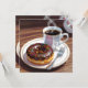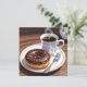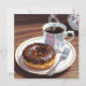 Um cartão bonito para desejar a um amigo tudo o que ele ama! Uma ilustração adorável de uma rosquinha coberta de chocolate perto de uma xícara de café quente.