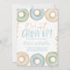 Um belo convite de aniversário de rosquinha para a sua Rosquinha cresce na festa de primeiro aniversario. Apresentando nossas rosquinhas aqua, azuis e beges desenhadas à mão com detalhes falsos de brilho dourado. Itens correspondentes disponíveis.