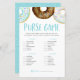 Verifique na bolsa os itens da lista. A pessoa com mais pontos é a vencedora! | Adicione este cartão de jogo "O que na sua bolsa" ao seu chá de fraldas. Esta placa de jogo trivia apresenta rosquinhas de cor d'água azuis, brancas e de chocolate com bordas coloridas. Personalize adicionando nomes, eventos e datas. Este jogo de bolsa azul da rosquinha é perfeito para qualquer época ou tema de chá de fraldas.