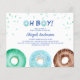 Rosquinha bonita com aspersão Aquarela de verde e azul, bonitinho Livro de Chá de fraldas Oh Boy Friendly Paper Convites sobre fundo branco - inclui uma bela e elegante tipografia de roteiro para a celebração especial da Madre Ser.