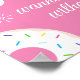Poster de noivado com tema de rosquinha bonito, com rosquinha decorada com um diamante como um anel de noivado. O texto diz "Rosquinha de me casar sem vocês!" por pedir aos amigos que sejam dadoras de honra no seu casamento.