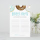 Que item de bebê começa com cada carta? Você consegue adivinhar o que a futura mãe escreveu? | Adicione este cartão de jogo do Baby Items ao seu chá de fraldas. Esta placa de jogo trivia apresenta rosquinhas de cor d'água azuis, brancas e de chocolate com bordas coloridas. Personalize adicionando nomes, eventos e datas. Este rosquinha azul Baby Items é perfeito para qualquer época ou tema de chá de fraldas.