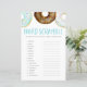 Adicione este cartão de jogo de palavras de bebê divertido ao seu chá de fraldas. Esta placa de jogo de chá de fraldas apresenta rosquinhas de cor d'água azul, branca e chocolate com bordos coloridos. Personalize adicionando nomes, eventos e datas. Este jogo de chá de fraldas com rosquinhas de aquarela é perfeito para qualquer estação ou tema de chá de fraldas.