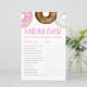 Junte-se aos convidados para encontrar as respostas para as perguntas! Adicione esta diversão Encontre o cartão de jogo Convidado ao seu chá de fraldas. Esta placa de jogo trivia chá de fraldas apresenta rosquinhas cor-de-água rosa, branca e chocolate com bordas coloridas. Personalize adicionando nomes, eventos e datas. Este jogo de chá de fraldas com rosquinhas de aquarela é perfeito para "É uma chá de fraldas Rapariga".