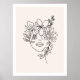 Um impressão de arte abstrato do rosto de uma mulher rodeado por flores adoráveis. Quic e moderno © Mini Moi Impressões