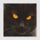 Rosto misterioso e olhos amarelos de um gato negro celebrando o Dia das Bruxas.