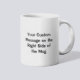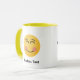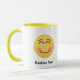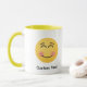 Um rosto sorridente, com olhos sorridentes e bochechas rosadas. Texto personalizado de ambos os lados.