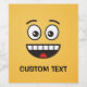 Um emoticon clássico com boca aberta mostrando dentes e olhos abertos. Custom Text.