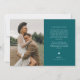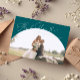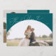 Cartão de agradecimento de casamento elegante e minimalista com uma grande moldura de arco verde e uma fonte cursiva que diz "obrigado" no topo. Você pode adicionar uma segunda foto no verso com uma mensagem.