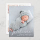 Uma opção econômica para anunciar o nascimento do seu bebê, apresentando a foto dele ou dela sobreposta com "Boas-Vindas" em um script branco elegante. Adicione o nome dele ou dela, data de nascimento e estatísticas de nascimento. No verso, adicione três fotos adicionais e uma mensagem personalizada.