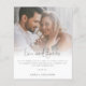 Script de Orçamento Foto Engajamento Amor e Agradecimento. Uma alternativa de preço acessível com tamanho MENOR 4,5” x 5,6”. Disponível em PAPEL CARTÃO 110 lb SEMI-BRILHANTE, que é a opção padrão (mais grosso para convites), OU PAPEL 80 lb COM ACABAMENTO SEDA MAIS FINO (ideal para anexos). Um design moderno para agradecer após a sua festa de noivado, com o conjunto de texto informal Amor e Agradecimento, abaixo da sua foto no topo e o restante do texto que você pode personalizar facilmente. Escolha uma foto de vocês dois e substitua a foto de amostra no espaço reservado do modelo.