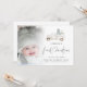 Roteiro de Foto Moderno Bebê Primeiro Caminhão de Natal. Basta substituir o exemplo de foto pelo seu. O primeiro Natal está num estilo moderno, escrito à mão, e personaliza facilmente o resto do texto. Uma ilustração de coloração aquosa macia e pastel de caminhão com árvore e boneco de neve é colocada acima do texto.