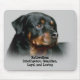Um protetor inerente, o Rottweiler é auto-confiante e responde quietamente e com uma atitude de esperar-e-ver às influências em seu ambiente. O Rottweiler é basicamente um cão da calma, o seguro e o corajoso com um aloofness auto-assegurado que não se empreste às amizade imediatas e indiscriminadas. Tem um desejo tremendo proteger a casa e a família, e é um cão inteligente da dureza e da adaptação extremas com uma vontade forte de trabalhar, fazendo o serido especialmente como um companheiro, o guardião e o cão multifacetado geral. Robusto e poderoso, o Rottweiler está o mais feliz quando dado um trabalho executar. Suas inteligência, resistência e vontade trabalhar fazem-no apropriado como um cão de polícia, um pastor, um cão do serviço, um cão da terapia, um concorrente da obediência e um companheiro devotado. É médio em tamanho e seu casaco é preto com oxidação às marcações de mogno. Isto farão um grande presente para você ou todo o amante que de Rottweiler você conhecer.