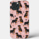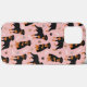 Cães girassóis bonitos sentam-se e ficam de pé com casacos pretas e bronzeadas com ossos de cão espalhados e padrões de pegadas.