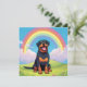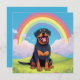 Um cartão de compaixão personalizado do Rottweiler com uma bela pintura de um Rottweiler numa colina celestial com uma bela sobrecarga do arco-íris. Simbolizando o cão Rottweiler passou a ponte do arco-íris para o paraíso doggy. Você pode personalizá-lo com o nome do seu próprio cachorro rottweiler ou qualquer outro texto no verso do cartão. Faz um memorial especial ou presente de simpatia para qualquer amante de cachorro rottweiler se o seu querido cão tiver passado.