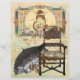 Cadeira Vintage com intrincado Rótulo Azul e guarda-chuva preto com Roteiro Borboleta sobre. Papel antigo Dourado e verde do lado oposto