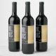 Rótulo da garrafa de vinho de Casamento Dourado e design preto. Personalize eliminando o texto e adicionando o seu próprio texto. Escolha seu estilo, cor e tamanho de fonte favoritos. Todos os elementos de design podem ser editados (movidos, excluídos, redimensionados etc.) A cor de fundo também pode ser alterada! Estilo: Etiqueta da garrafa de vinho (3,5" x 4") Personalize facilmente uma garrafa de vinho e torne-a 100% sua, adicionando um rótulo! Perfeito para casamentos, despedida de solteiro e festas de aniversário. Dimensões: 3,5" x 4"; ajustados de garrafas de vinho de tamanho mais comum Cada conjunto inclui 6 etiquetas de altura Vibrante resistente a manchas e à prova d'água, cor de cheio, impressão fotográfica que representa o teste do tempo Método de colagem fácil; as etiquetas são facilmente aplicadas removendo a fissura e o revestimento de pele para expor a Dica permanente do Designer adesivo: Para garantir o impressão de mais alta qualidade, note a área de design personalizável deste produto mede 3,5" x 4". Para obter melhores resultados, adicione sangramento de 0,13".
