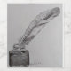 Uma elegante e detalhada pena mergulhada num antigo porta-tinta preta. Feita de pontos, a técnica é chamada Pointilism.