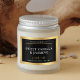 Eleve o design de embalagem do seu produto com estas etiquetas elegantes de retângulo preto e dourado 3x2" - perfeitas para frascos de vela, casquilhos de cera fundida, latas ou bolsas. Apresentando um efeito metálico borda dourada e fundo preto com serifa e espaço modernos para seu nome de marca. Edite no editor de design e revele algumas opções de texto de script dourado, incluindo 'vela perfumada', 'vela de cera de soja', 'vela de luxo' e 'feita à mão' que você pode escolher.