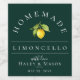 Lindo rótulo de limão e folhas em aquarela para bebida limoncello. Projetado para combinar com nossa Coleção Pomar de Citros. A cor de fundo, mostrada em verde esmeralda, pode ser personalizada.