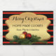 Uma etiqueta festiva para a sua casa fez biscoitos de Natal ou outros doces com design de ouro impresso com listras de ouro vermelhas em fundo preto com pinças e bausolas de Natal.