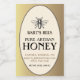 Personalize a sua etiqueta de mel com o seu nome, endereço, nome comercial, peso líquido do mel, descritores e informações de contato. Abelha heráldica venenosa com borda oval sobre fundo de gradiente dourado. Excelente para garrafas maiores.