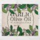Galhos de oliveiras clássicos e coloridos, com fundo envelhecido nesta etiqueta de conservas para os seus óleos e vinagres aromatizados caseiros.