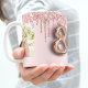 Um rosa dourado, fundo cor-de-rosa pincelado decorado. Personalize e adicione uma data, um nome e uma foto. Número de idade escrito com uma fonte de estilo de balão.