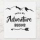A Aventura Começa Com O Rótulo Do Vinho Trendy. Nossa montanha feita à mão com fontes modernas e nossa seta feita à mão rodeiam a citação positiva "e assim a aventura começa".