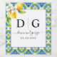 Azulejos azuis e amarelos mediterrânicos e ramificação de limão com flores etiquetas de garrafa de vinho de casamento. Inspirada pelo Mediterrâneo, esta etiqueta de garrafa de vinho de casamento captura uma atmosfera ensolarada e alegre. O design azul e amarelo impressionante evoca o litoral italiano, enquanto um arranjo delicado de ramos de limão com flores adiciona um toque de charme "La Dolce Vita". A sofisticada e convidativa etiqueta é perfeita para um casamento que incorpora o calor e a beleza de um verão italiano. Uma apresentação enquadrada das iniciais e nomes do casal garante que as informações essenciais sejam captadas pelos olhos e facilmente lidas.
