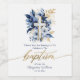 Obrigado de batismo moderno e elegante, você usa etiquetas. O rótulo apresenta o guião tipográfico "Baptism" em letras douradas, um arranjo floral azul, marinho e dourado com uma cruz azul e dourada correspondente, tudo colocado sobre um fundo branco pristino. Personalize ainda mais com um nome e data.