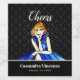 Projetado com base na minha ilustração de uma bela senhora loira que veste um elegante e elegante vestido de coquetel azul-real preto com cor damasco preta e cinza no fundo. O design tem textos personalizáveis do lado direito. Personalize na minha loja para um design personalizado.