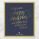 Rótulo de Vinho da Caligrafia do Marinho Azul Feliz Natal Dourado