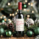 A caligrafia simples, moderna e festiva "Feliz Natal" em vermelho, adicione as etiquetas de vinhos de logotipo para a sua empresa. Faça um presente de feriado comercial de excelente.