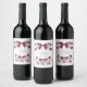 Tema de arco russo e romântico - rótulo da garrafa de vinho de casamento com ilustração desenhada manualmente de fitas magenta e flores.