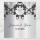 Design personalizado elegante do rótulo do vinho de casamento, com uma borda estilizada de preto barroco e prata sobre um fundo de prata correspondente. O texto é totalmente personalizável.