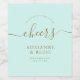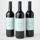 Elegante garrafa de vinho de casamento/noivado "Feliz para sempre". Apresentando a inscrição em ouro cônico sobre fundo verde da casa da moeda com estilo minimalista, moderno e clássico de tipografia. Todo o texto é personalizável, personalize com o nome do casal/ noiva e noiva, o lugar e a data do casamento/noivado. Perfeito para presente de casamento/noivado ou favor da festa.