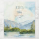 Etiquetas de garrafa de vinho personalizadas para casamento de montanha com design cenas de cor d'água em tons de azul empoeirado e verde. A cena do lago apresenta montanhas, verde e pinheiros, o lago e um céu leve. O modelo está pronto para você adicionar os nomes da noiva e do noivo e a data do casamento. Se você quiser produtos correspondentes, por favor, navegue na minha coleção Mountain Lake.