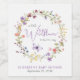 Etiqueta de vinho elegante para o seu chá de menina apresentando "uma pequena flor selvagem está a caminho" na tipografia da cinza moderna e uma escrita púrpura de lavanda chica, uma camada de aquarela inspirada no ventre de roxo, rosa, pêssego e flores silvestres amarelas, e uma borboleta roxa. Acrescentar o nome da mãe e a data do chá à lavanda simples e à tipografia das cinzas.