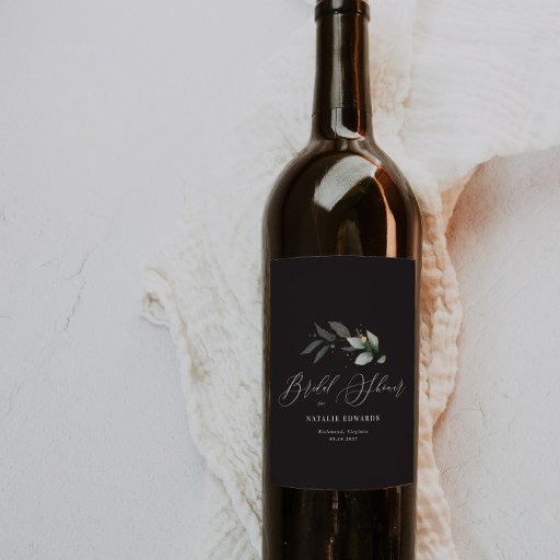 Rótulo De Garrafa De Cerveja Chá de noiva em eucalipto preto dourado