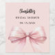 Um fundo cor-de-rosa rosado. Decorado com um grande laço. Personalize e adicione o nome da noiva e uma data. Tipo de letra manuscrito preto.